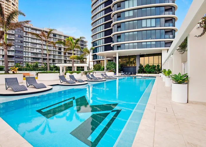 Het Gold Coast Convention and Exhibition Centre ligt op 3 km afstand, terwijl de Oneindigheid vrij dicht bij dit 100 m² grote appartement is. Het centrale strand ligt vlakbij.